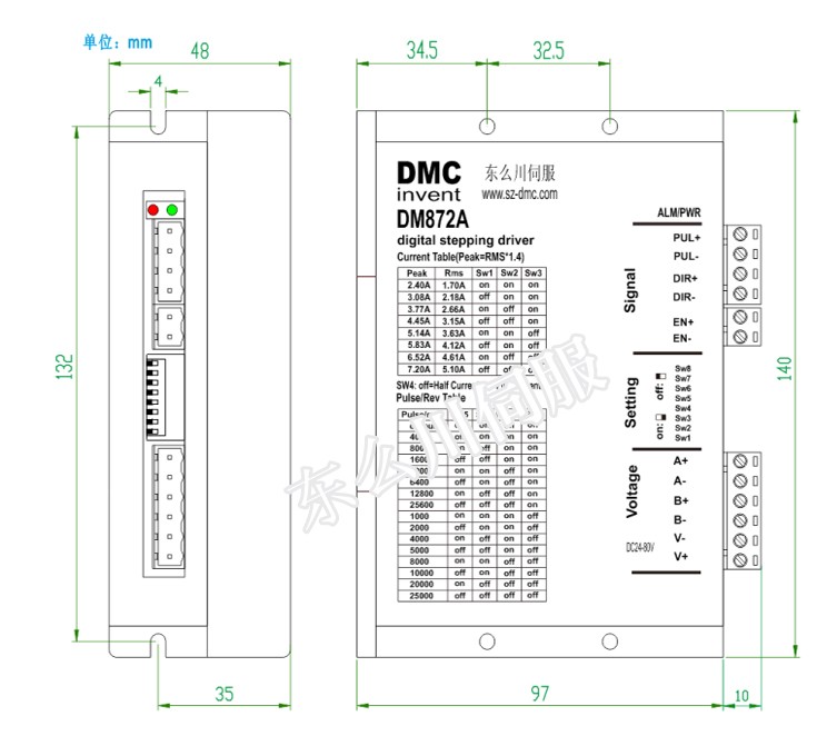 ●低壓兩相步進驅(qū)動DM872A智能電流控制提高動態(tài)Q值,使電機發(fā)熱大為降低