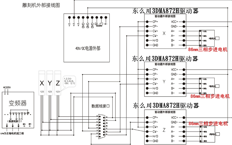 雕刻機均可以采用東么川伺服的三相步進驅(qū)動器+三相混合式步進電機