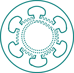 為使轉(zhuǎn)、定子的齒對(duì)齊,定子磁極上的小齒,齒寬和齒槽和轉(zhuǎn)子相同。