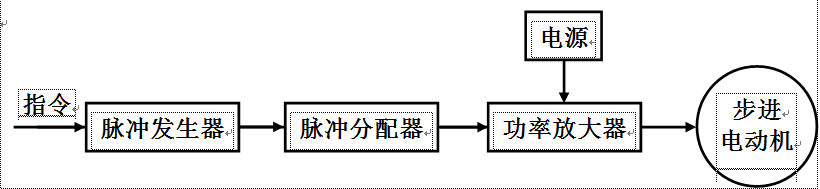 步進電動機的驅動電源主要由脈沖發生器、脈沖分配器和脈沖放大器(也稱功率放大器)三部分組成。